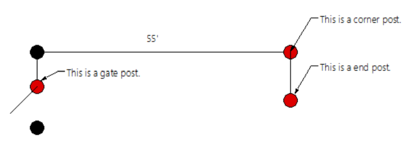 More Instructions Start CalculatorPlease take a moment to place your cursor over the photo to familiarize yourself with components necessary for calculating your fence, such as fence run, gate posts, etc.